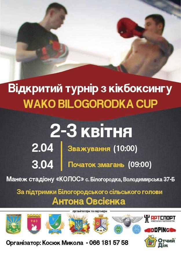 3 квітня в Білогородці на Київщині відбудеться відкритий турнір з кікбоксингу WAKO «Bilogorodka Cup».