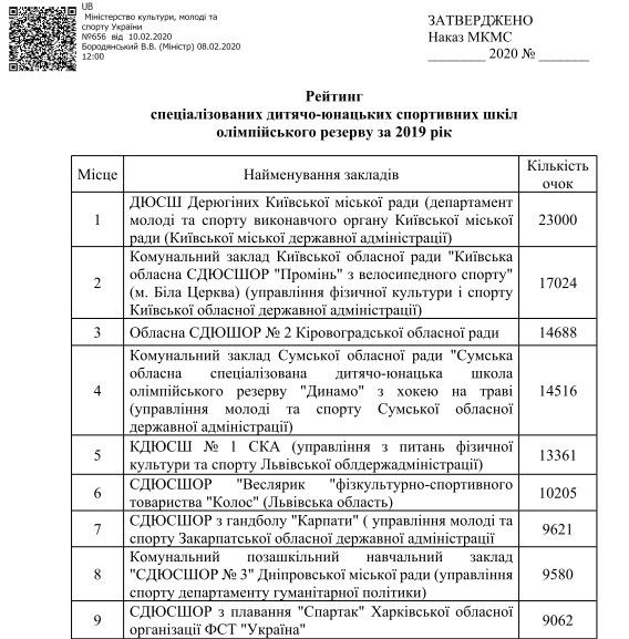 КЗ КОР «Київська обласна спеціалізована дитячо-юнацька спортивна школа олімпійського резерву «Промінь» з велосипедного спорту (КОСДЮШОР) посіла друге місце в Рейтингу спеціалізованих дитячо-юнацьких спортивних шкіл олімпійського резерву Міністерства культури, молоді і спорту за 2019 рік!