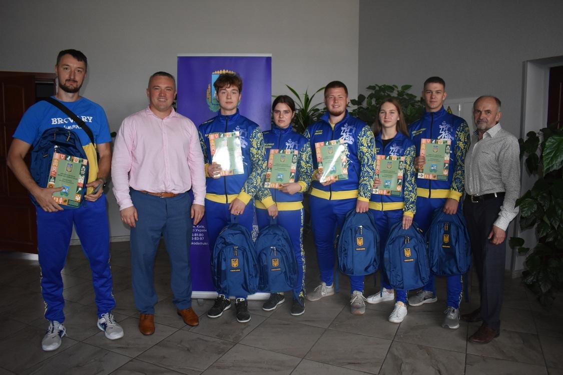 Також Сергій Тимофєєв разом з директором Київської обласної ДЮСШ Вʼячеславом Сидоренком передав переможцям міжнародних стартів в дарунок спортивне спорядження.