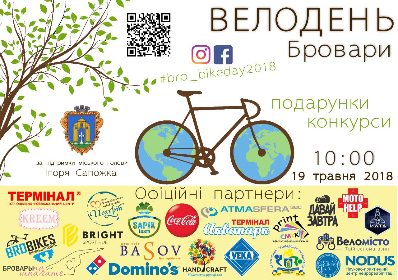 Великий день наближається в Броварах. Навіть Велодень! З велогонками, подарунками, конкурсами та всією належною до велосипедного свята атрибутикою.