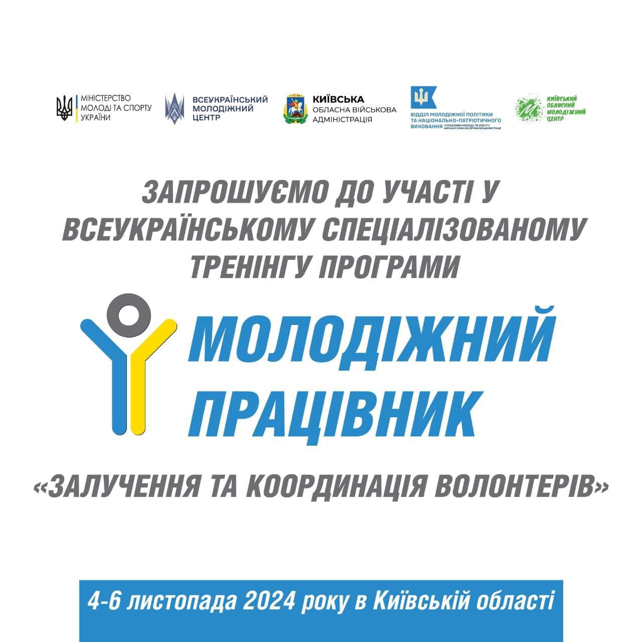 4 листопада стартує Всеукраїнський спеціалізований тренінг програми «Молодіжний працівник» «Залучення та координація волонтерів»!